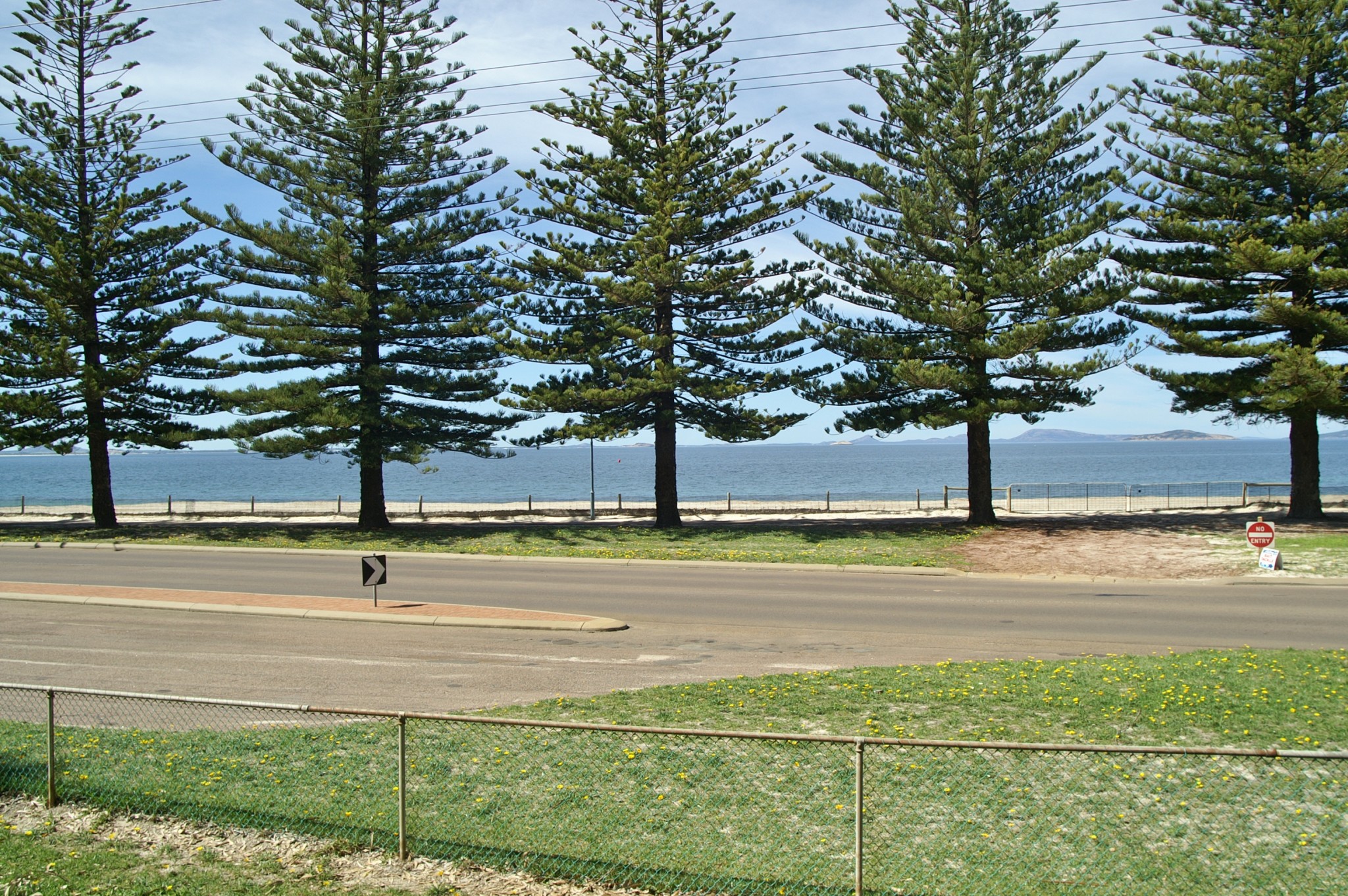 We arrived in Esperance WA Tuesday, spent Wednesday cleaning and restocking the house after being cleaned out at the border and spending 4 or 5 nights free camping across the Nullarbor. Whilst the road across was good we did seem to attract a lot of dust and dirt from our various sorties off highway. Also had a bit of a rest day. The view through the Norfolk Pines from our front porch was worth the sit.