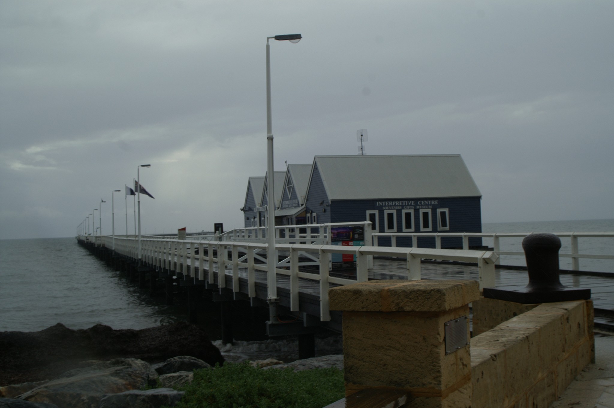 But, we weren’t there all the time and we didn’t get a dog or pussy nor did we actually see any of the lambs come into the world but we did finally go to Busselton on a nice wet cold windy day to find the longest pier and the underwater observatory closed cos of the weather. I took some shots anyway cos this wouldn’t be our blog without them (as I’m sure you’ve come to expect)…..
