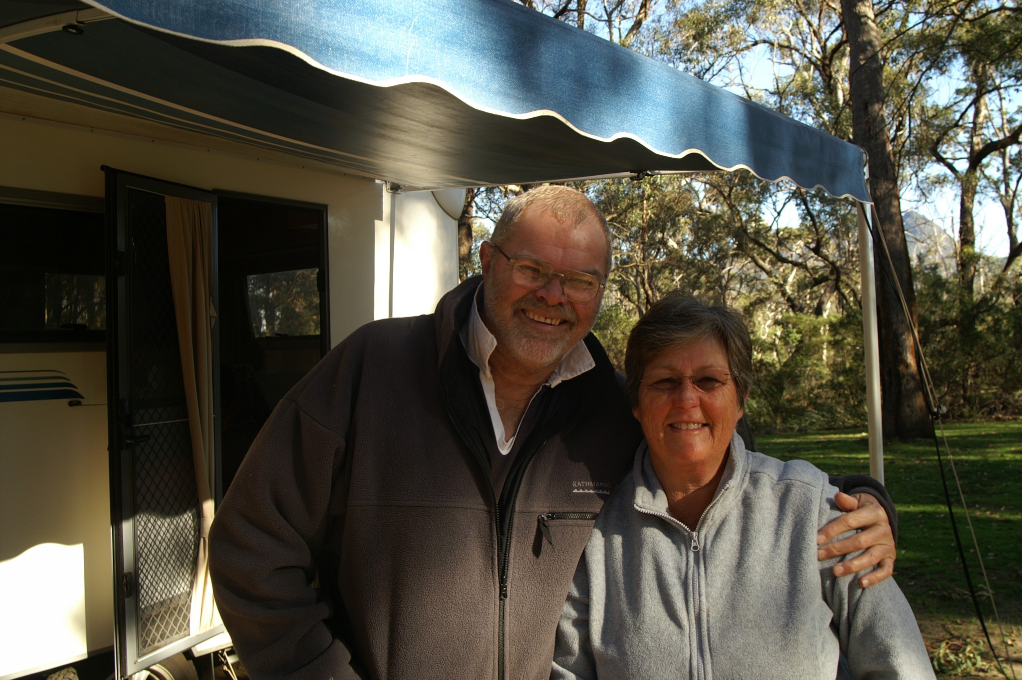 OK. So we had to start the Zig-Zag – head east old folks was the call, so, back to Wagin. This put us in striking distance of Albany for another session with my personal podiatrist (I know all the staff on first name terms now and they’re following our adventures), a little round trip of some 500km for a 20 minute appointment. This saw Suzi top 10,000km for the trip so far along with 10,000km as well on the truck. Another $220.00 on special shoes to take orthotics and we were back on the road again We stayed in the Wagin showgrounds, a delightful spot with all amenities for just $8.00 per night. Needed to conserve funds with the cost of shoes as they are so we moved on to the Stirling Ranges National Park just 80 km north of Albany and stayed in a forest camp at $10.00 per night. Met Max and Glen from Redland Bay in Qld……..
