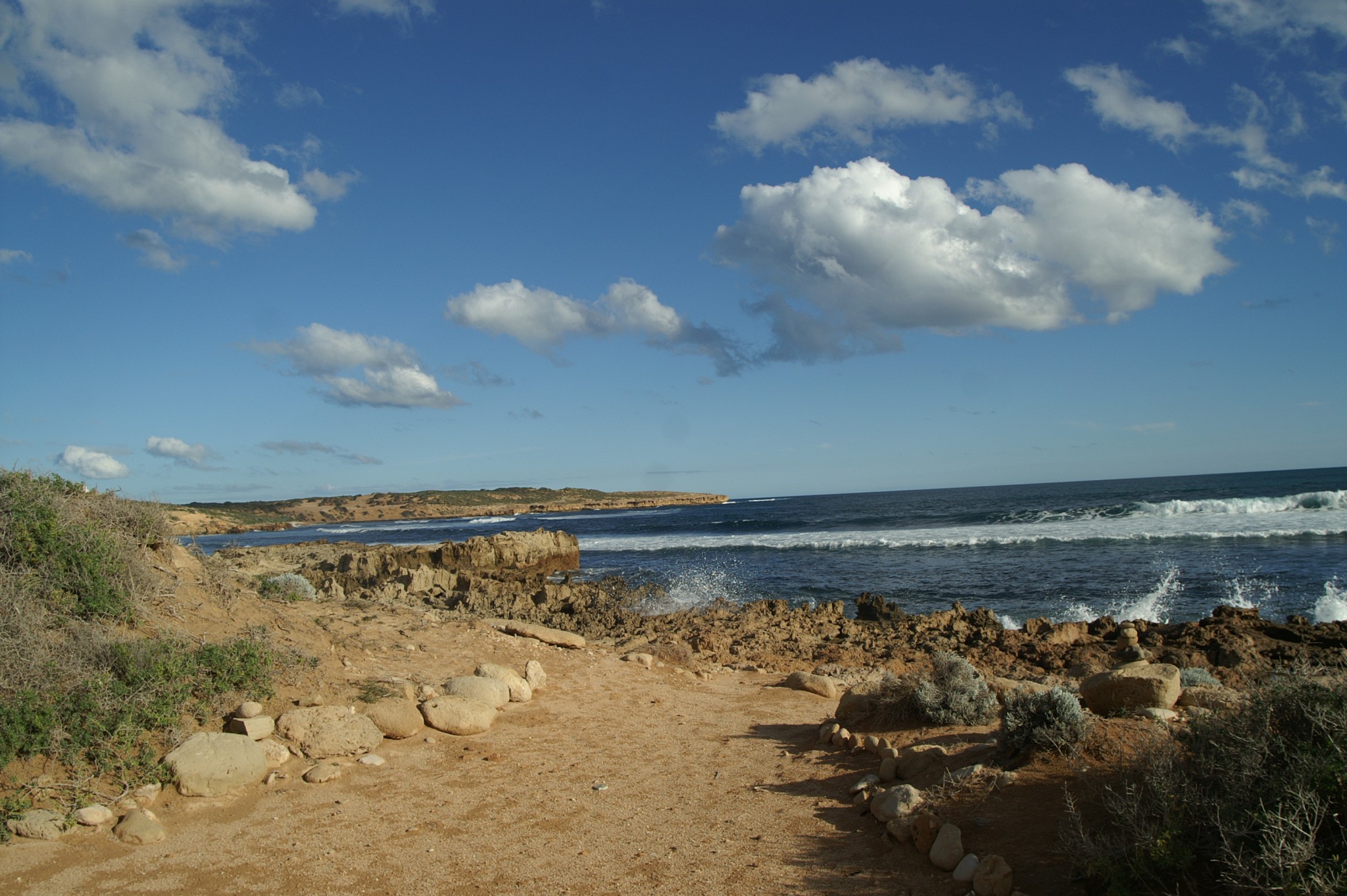 From Head of Bight we made Ceduna, but on the way attempted to access Cactus Beach out of Penong (the windmill town). Just 500mtrs into the turn-off the road turned to ‘not the best’ but on stopping a local who had just come along it we were faithfully advised that the road was OK, particularly in ‘a good rig like that’. OK – onwards. But another 500mtrs in the road turned to ‘worse than not the best”, so a slow U-turn and back with the resolve that we would see the ‘Cactus’ another day.
