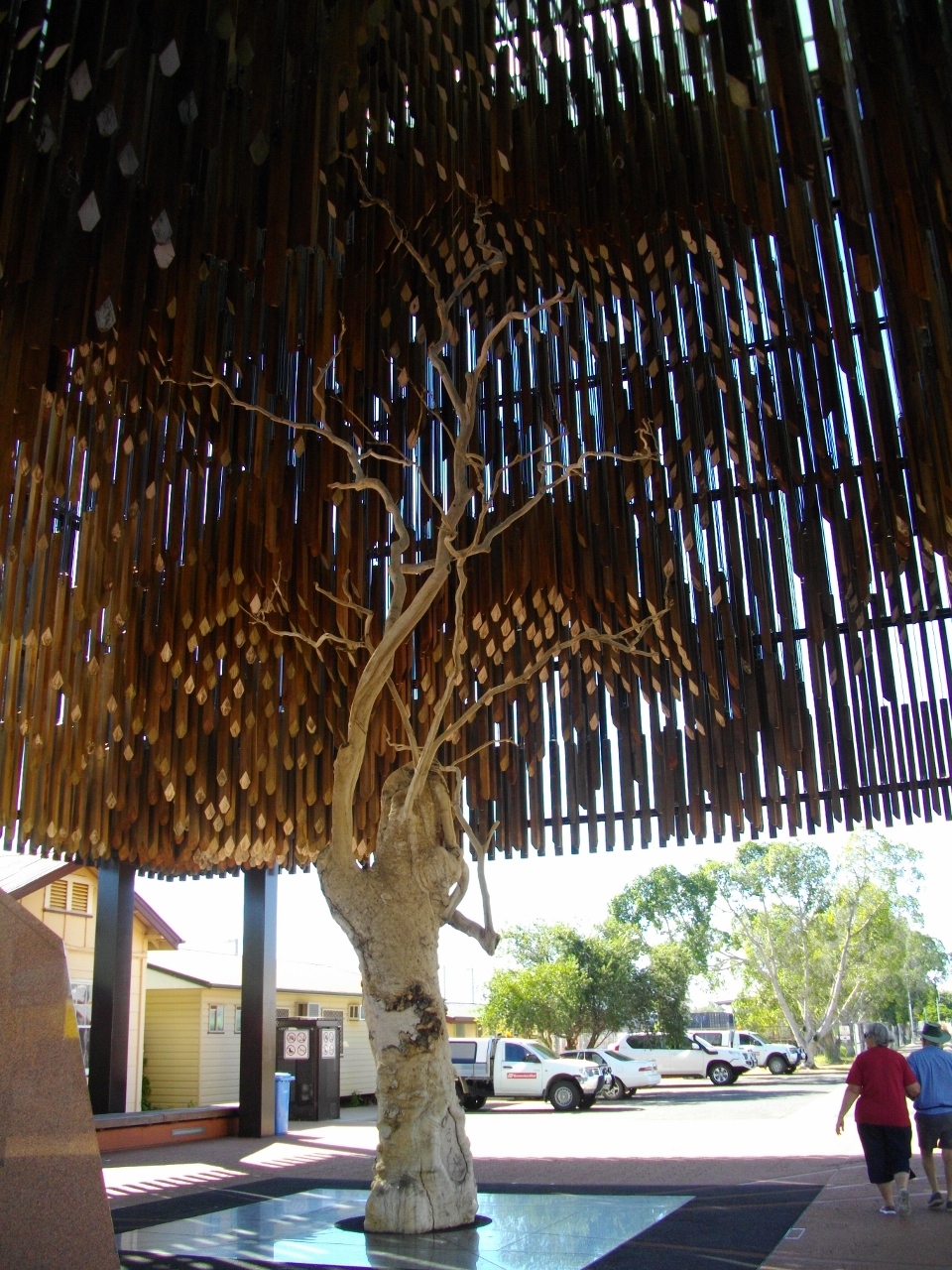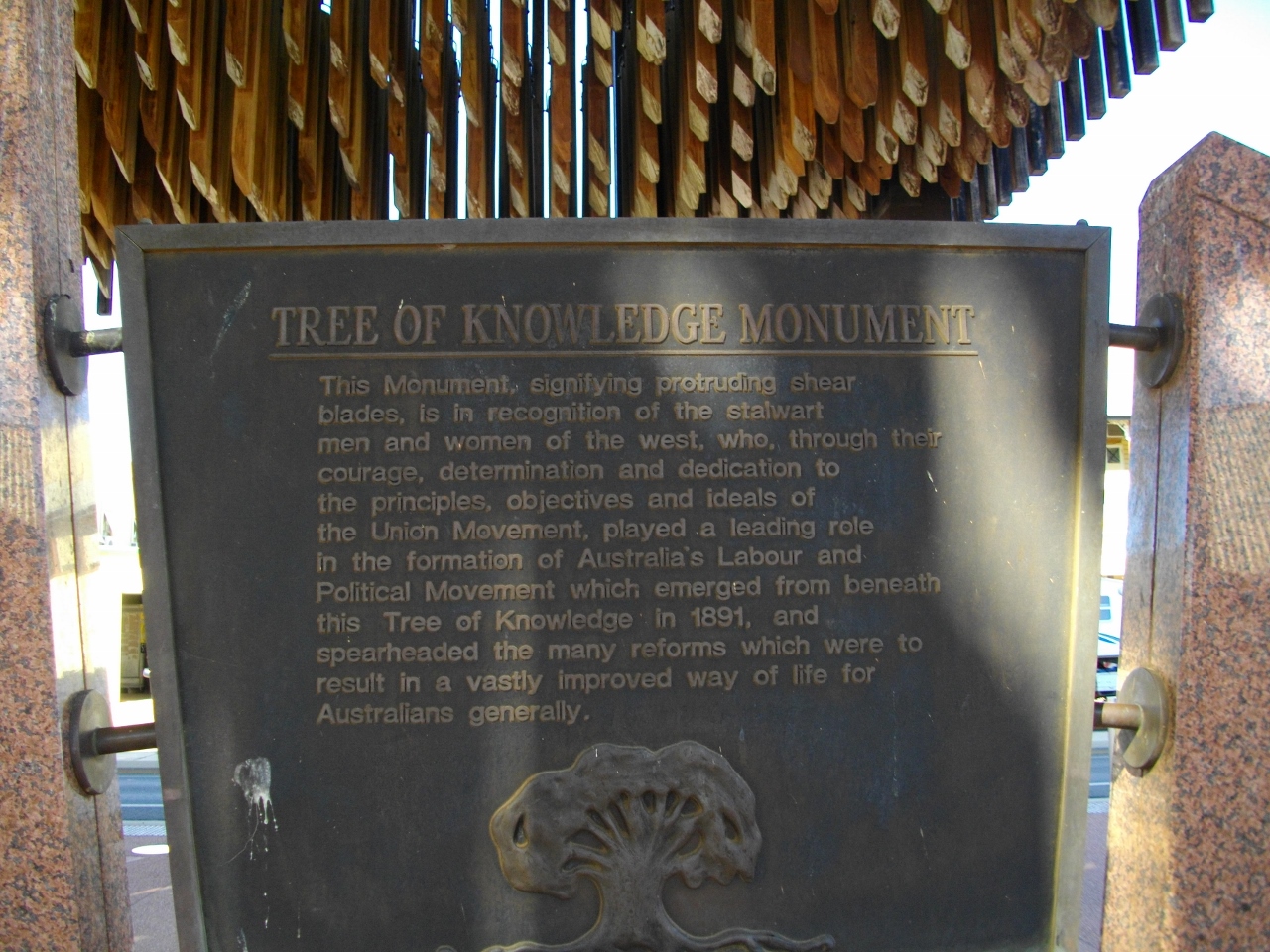 Ah Barcaldine the home of the ALP and unionism. Didn’t expect to find much of interest here and wasn’t disappointed. Everything focusses on the shearers strike of 1891 and the subsequent rise of unionism and the union formation of the ALP. The so-called “tree of knowledge” which these days is not much more than a fossil is enshrined in a huge monument dedicated to the meeting place for those originally discussing the formation of the Australian Labor Party. I must admit as a commemorative sight it is well done….