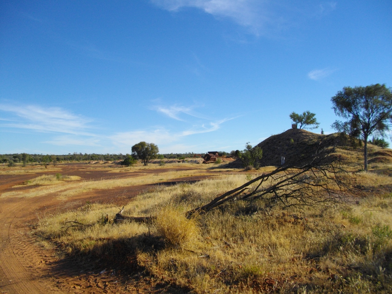 I headed the last entry “Yowah” but failed to actually get there. Well I was probably dying of boredom. 100km of nothing is fine but 200kms is bloody boring and its typically that far from anything to anything else. Yowah is 70km off the road from Eulo to Thargomindah and its just a thin strip of bitumen going through the middle of nothing. Why anyone found a need to be here in the first place defies belief and to do it 130 years ago on horseback just seems stupid. Well the story is that the person who did make it here first was drunk but he must have stayed drunk for several weeks. How he recognised opals beats the s… out of me. We’re told they lay on the surface back then but I can tell you with absolute certainty they don’t now. Now to add to interest Judes and Robyns aunt and uncle had a mine out here in the 70’s and Robyn actually went down it in a visit in 1979. Bugger -we couldn’t find it. We’re no better off than we were when we got here – we didn’t strike it rich. Mind you when you encounter the locals here it becomes very apparent that nor did they Every