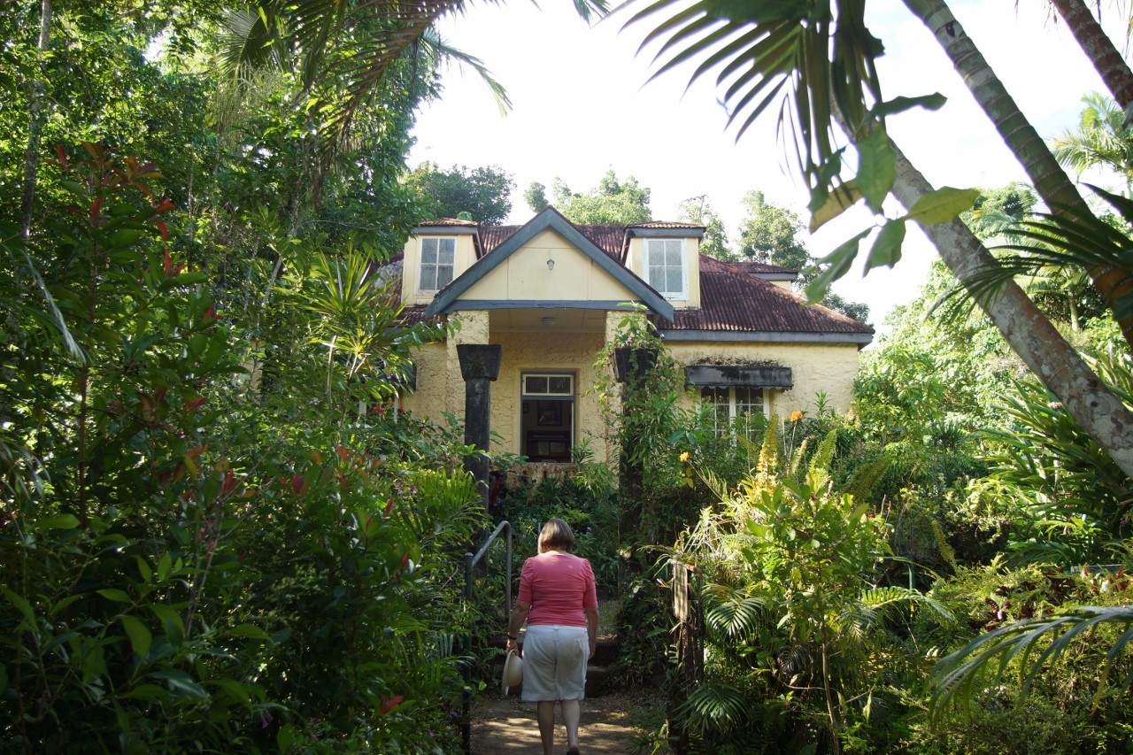 Having bought at some earlier stage some 13 acres on Mena Creek beside the then Bruce Highway somewhere inland of Innisfail and Mission Beach he set about transforming it into a home for his new wife. With the aid of 2 young black boys and sand from the creek bed, using German imported cement he hand moulded concrete beams, lintels, walls, stairs, flower pots to build first a cottage and then a castle. Five (5) years of work resulted in a magnificent resort, some of which still stands today…..