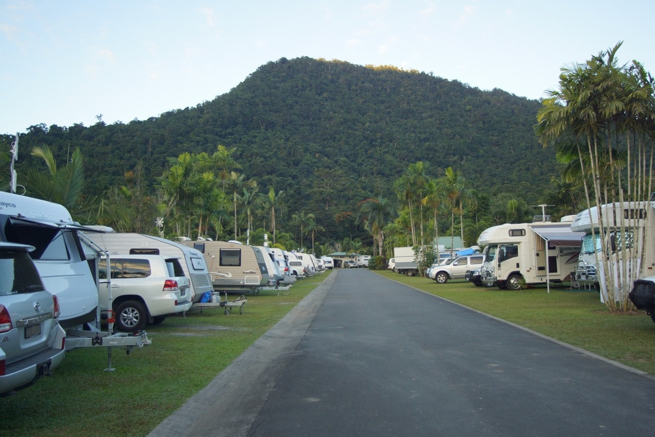 This park, Crystal Cascades Big 4 is yet again one of the best we’ve stayed in. Just a bit far out of town and I’ve been lost on the townward journey and return twice now. Sometimes sat-navs are good things. We’ve sort of been biding our time until John & Lin Waterhouse arrive in Cairns so we can do the sights together. They’re expected by the 9th. In the meantime I had planned to do some work for Civic Guides but upon inspection it became apparent that most of the signs were missing so selling space on them became a little academic.