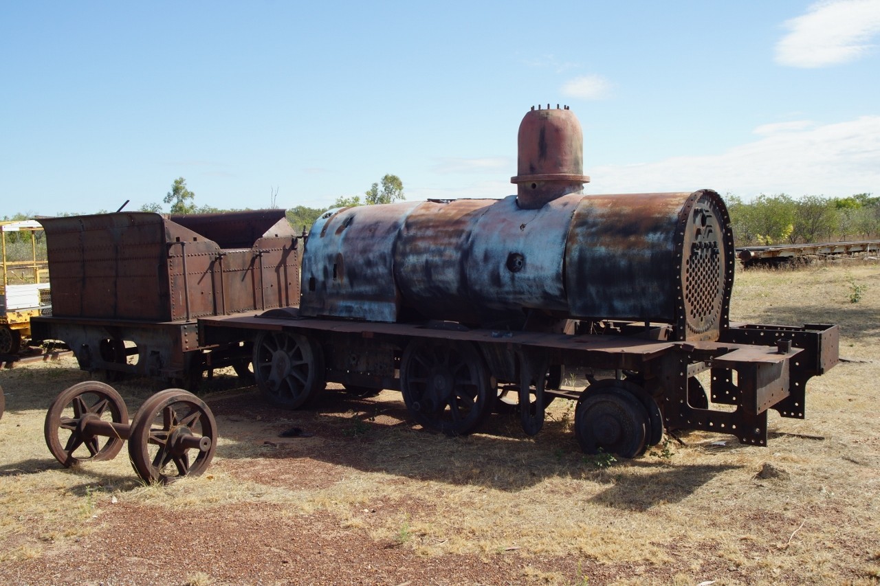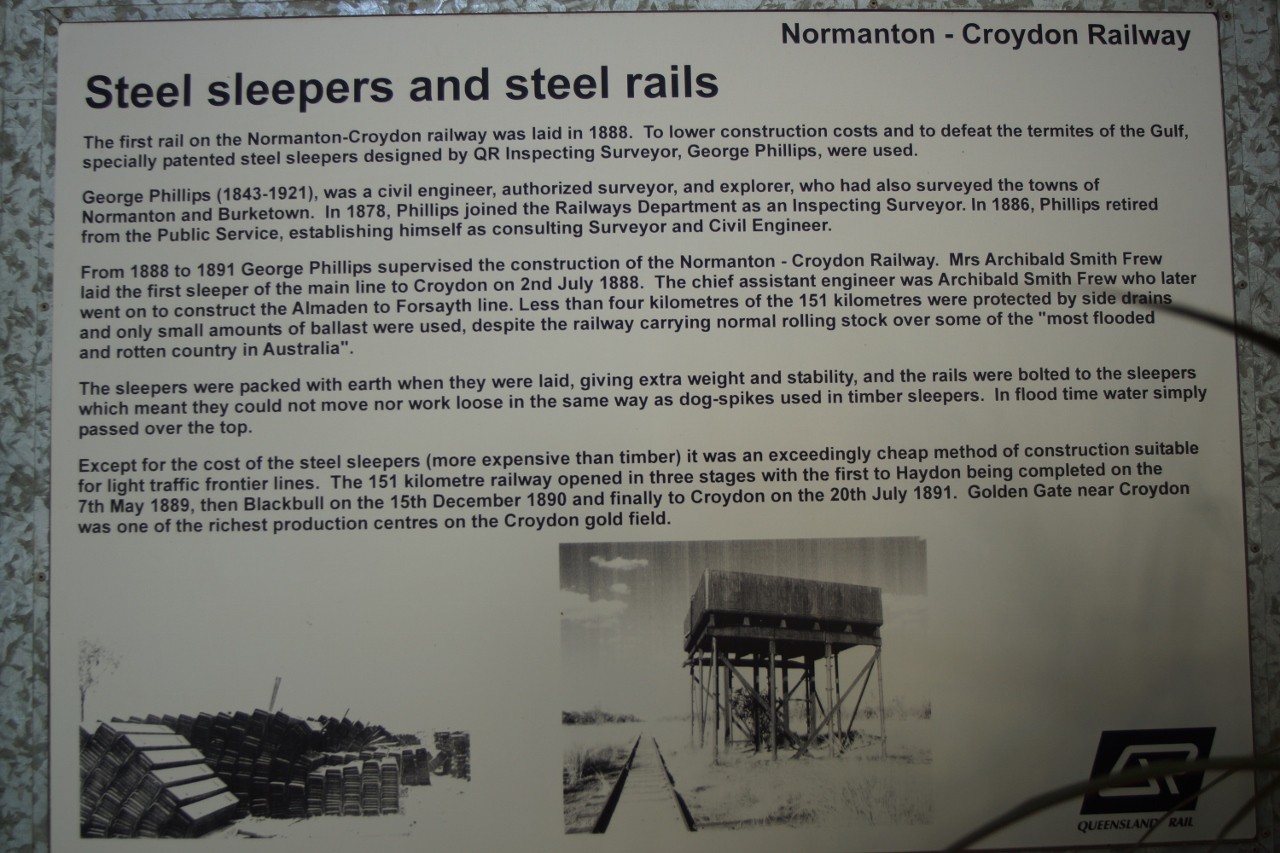 note the steel sleepers and the rails bolted to them. You might even see the the undulations and unevenness of the rails. And one of the original steam engines although the one at Normanton is in better condition. Croydon was he end of the line. Back to Georgetown