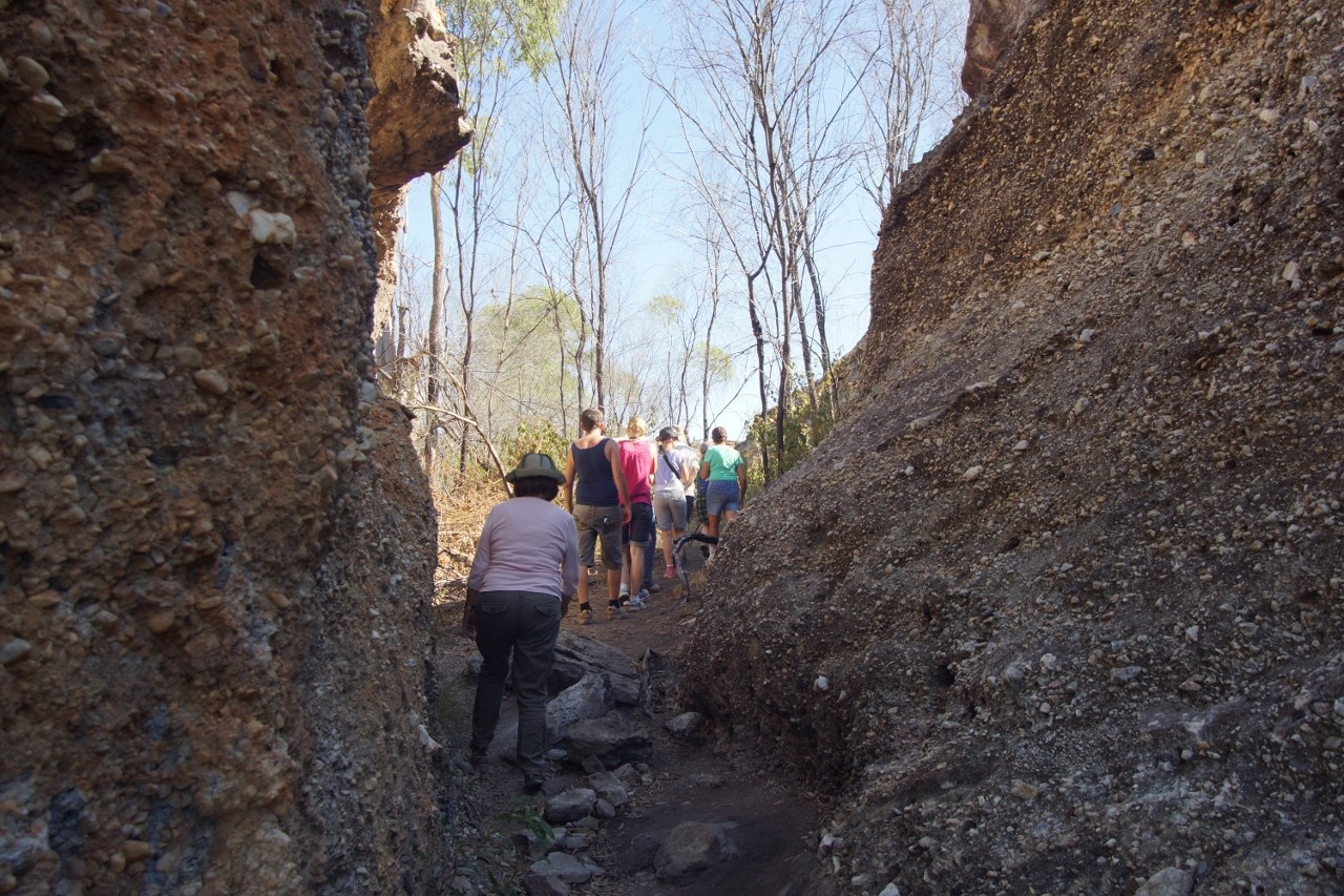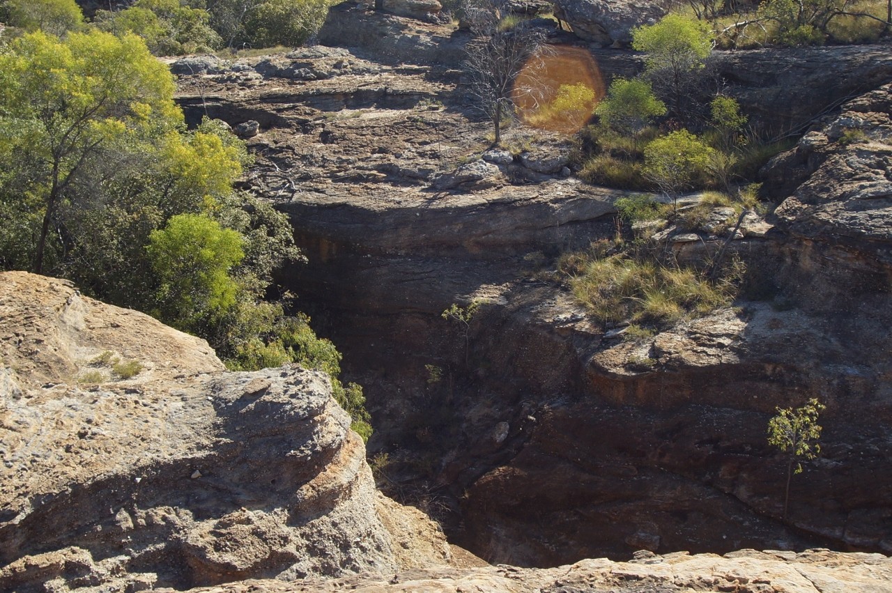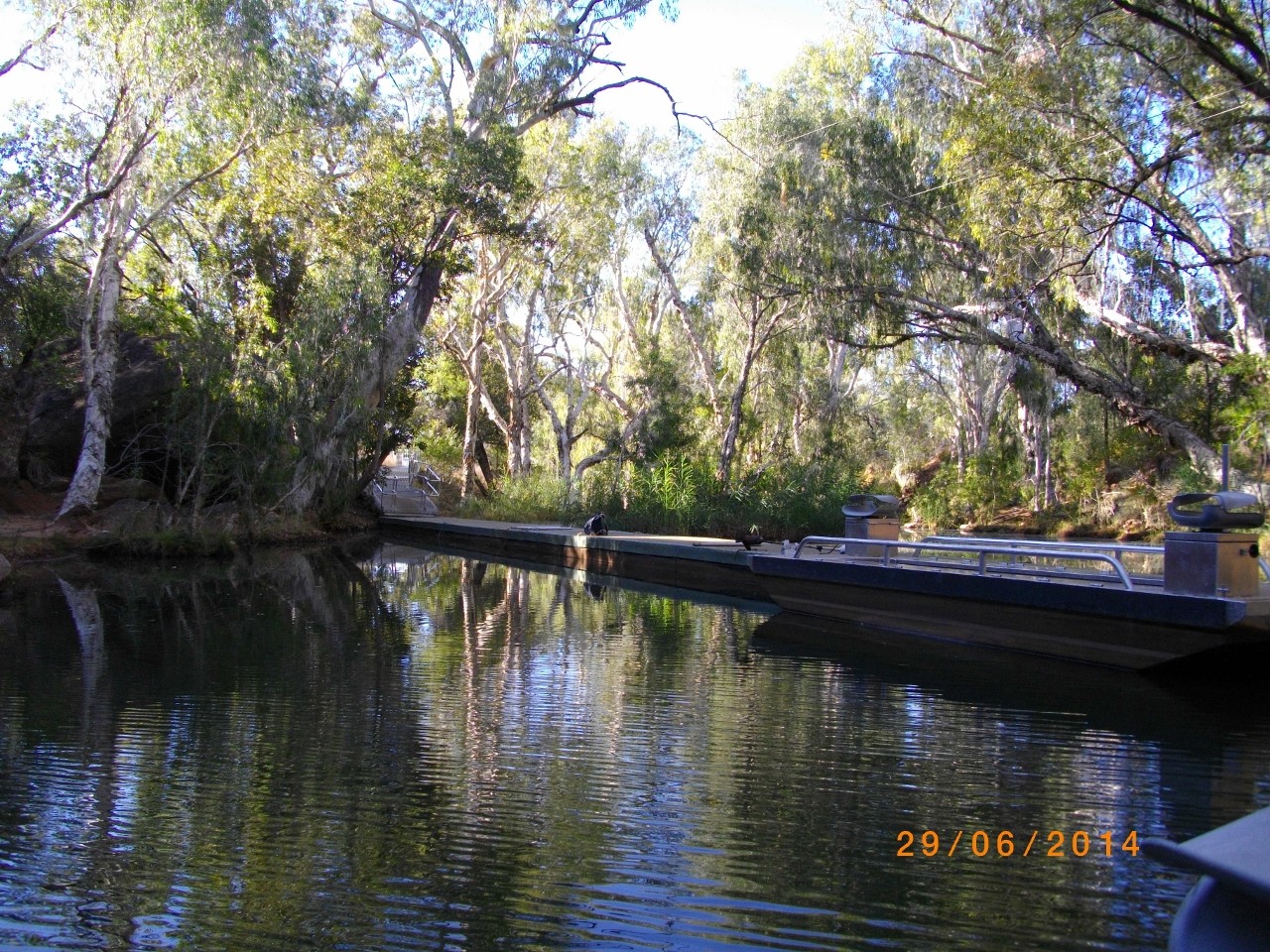 But, Georgetown was just the base from which to explore one of Queenslands most fascinating natural attractions. Cobbold Gorge, some 90 km southeast of the town accessed by 40% good bitumen, 60% bad dirt was surprisingly well patronised. On the drive out on one of the dirt sections we followed two caravans in a cloud of dust. We also had to contend with loads of cattle across the roads but 1 1/2 hours later we rocked into a resort……..