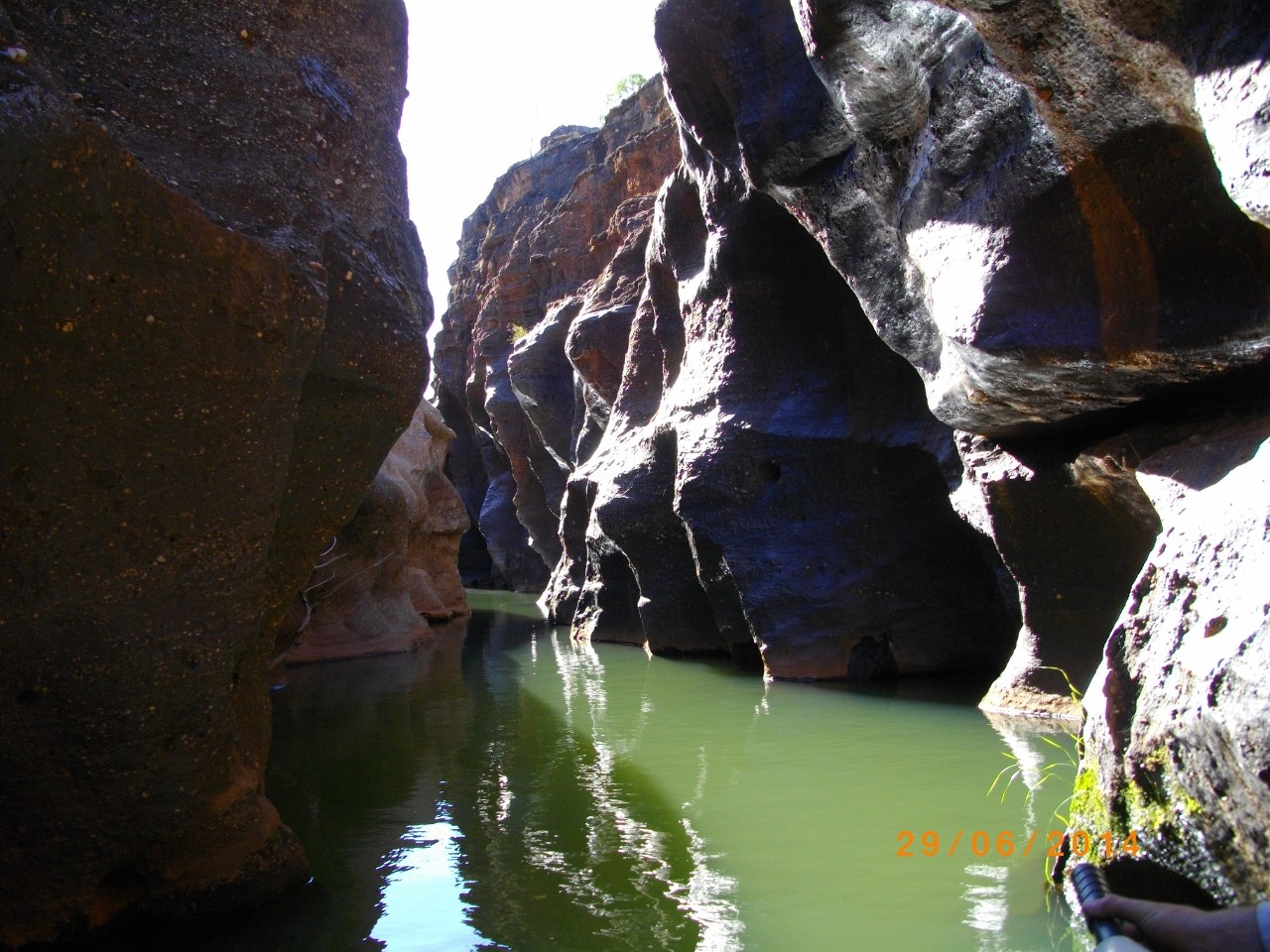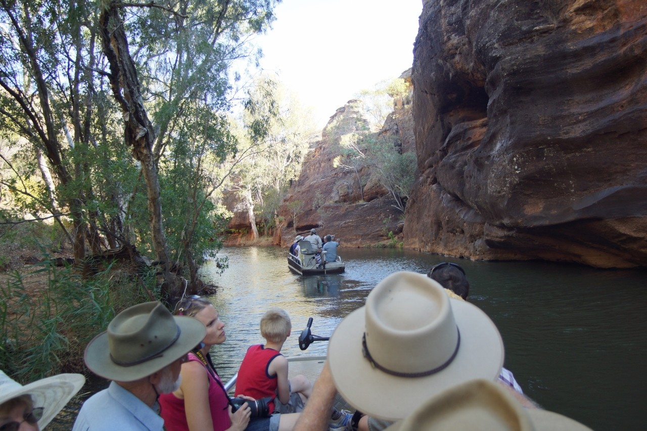 and , yes, that’s a freshwater croc languishing on the banks. Oh, and there’s no room to turn around at the head of the gorge hence the motor at each end and electric so no noise stirs the crocs as food arrives in the boats.