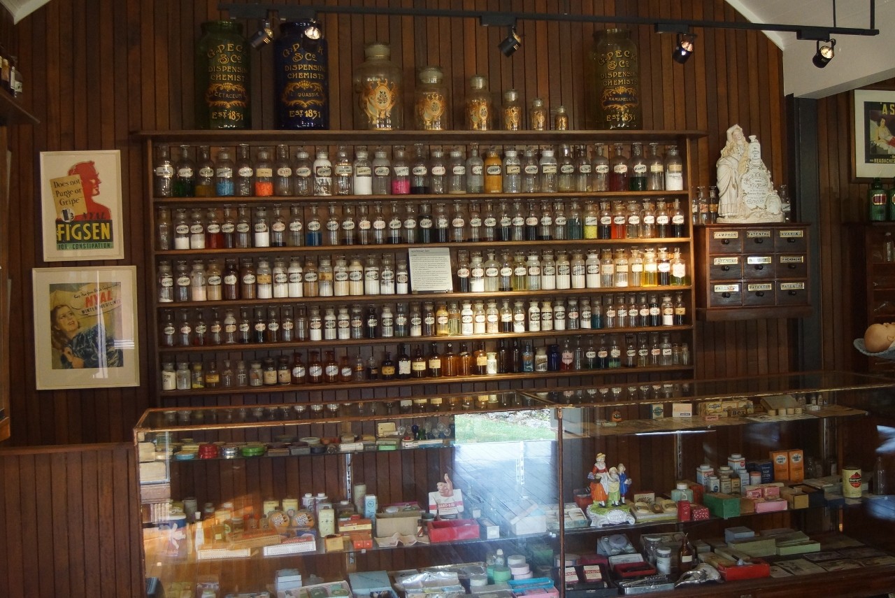Everywhere you turn there are reminders of history, of things you can remember from childhood (and earlier) all displayed in category and context – clothes in the clothing shop, tools in the workshops, toys in the toy shop, bowsers and cars in the service station, pills in the pharmacy and on and on. We were worn out before the day was up – brain drain and weary feet. Terrific but in too many ways a vivid reminder of our age.