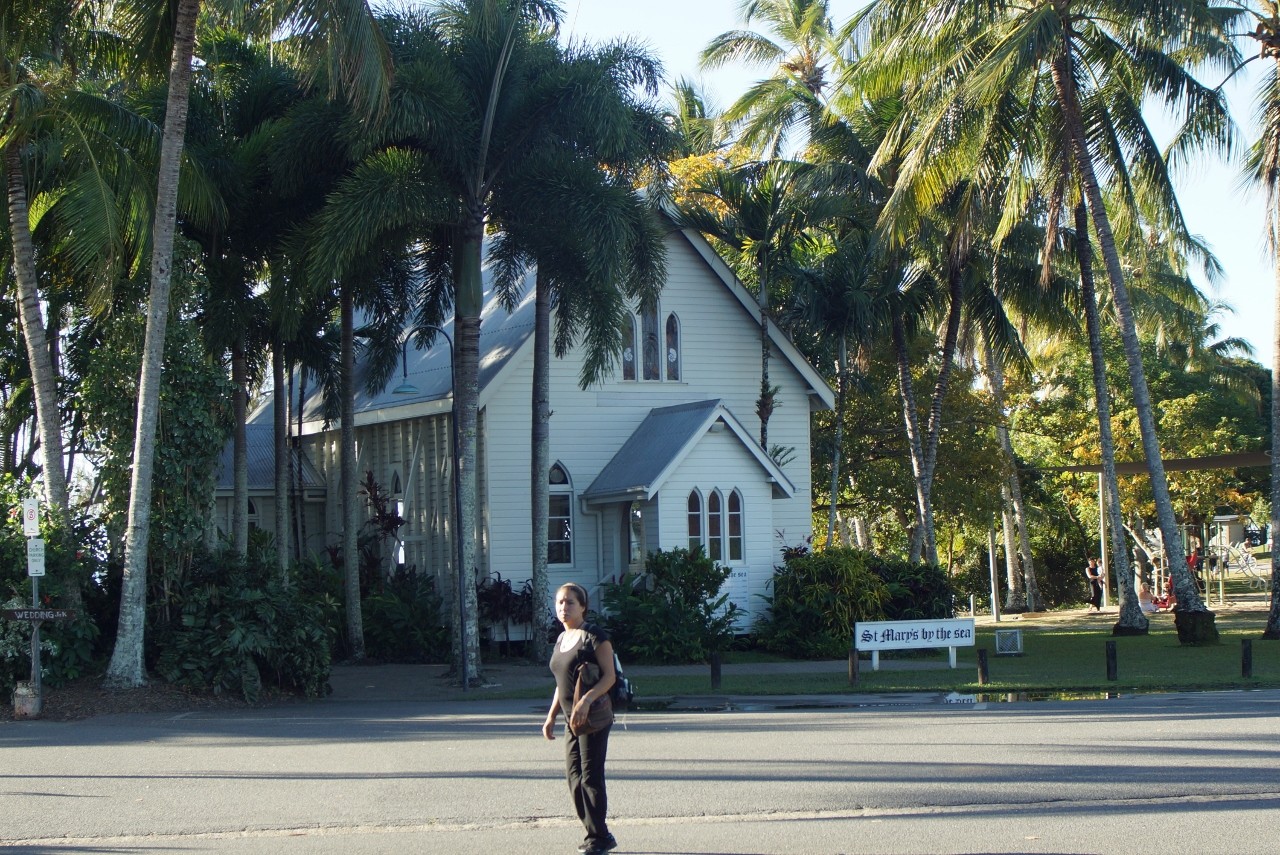 Port Douglas was just a mangrove swamp before Christopher Skase. His “Mirage” development turned the place into a millionaires playground. (Well, that might be a bit harsh, but it certainly came into its own with that little development). The church is somewhat indicative of its roots, but the house on the hill is more of its’ today. So are the boats in the marina.