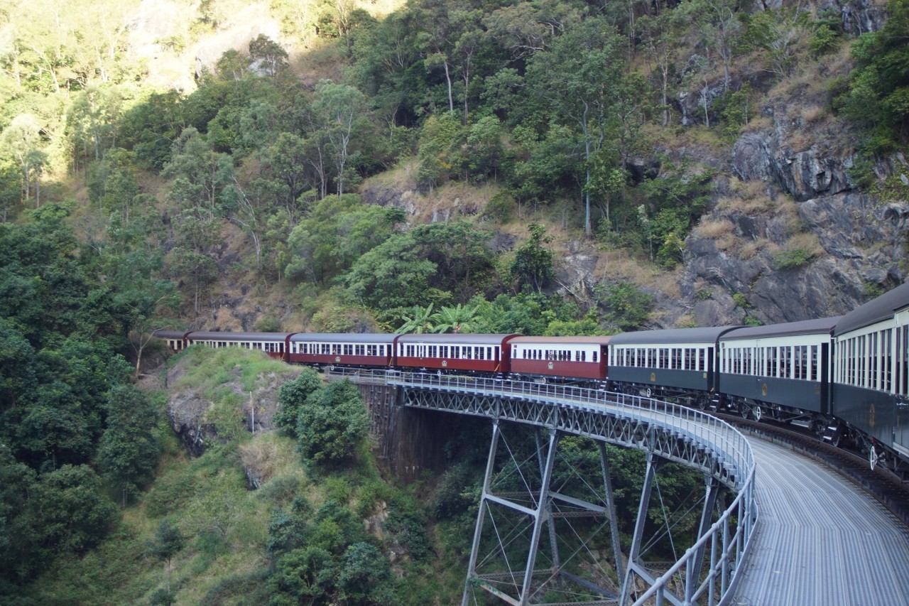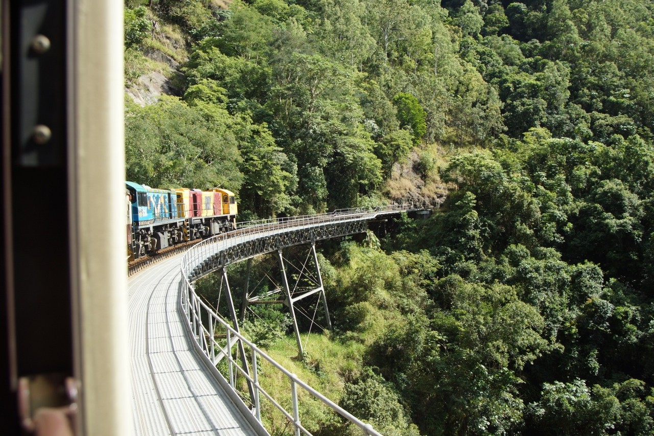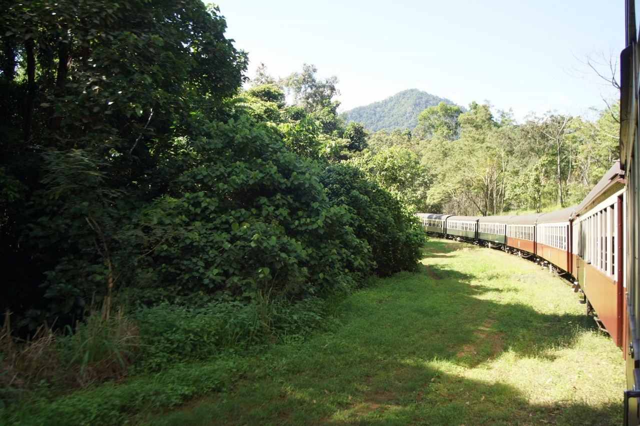 Old carriages all nicely restored. The railway is still operated by Queensland Rail. On this day there were 14 carriages all fully booked. Two trips a day, $72.00 per person, must translate into a very profitable rail line.