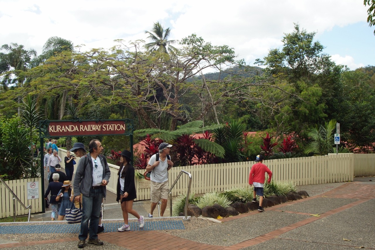 Where to ….?   Kuranda is the answer. Just 35km from Cairns the train still took two hours both up and down hill. The track rises at a rate of 1:50, apparently quite steep for a train but the journey is very scenic. The blurb says its the worlds most scenic but I suspect that’s an overstatement.