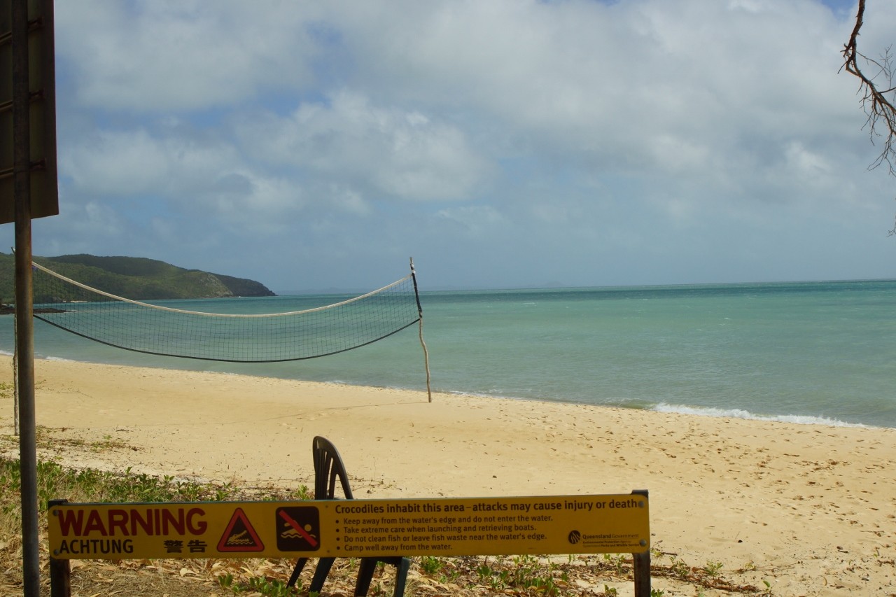 and gets carted up the beach. No wonder its expensive – they have to be careful of crocs. Hah! Crocodile warning signs everywhere and still not a croc to be seen. And that one back up there at the Croc Shop is stuffed.