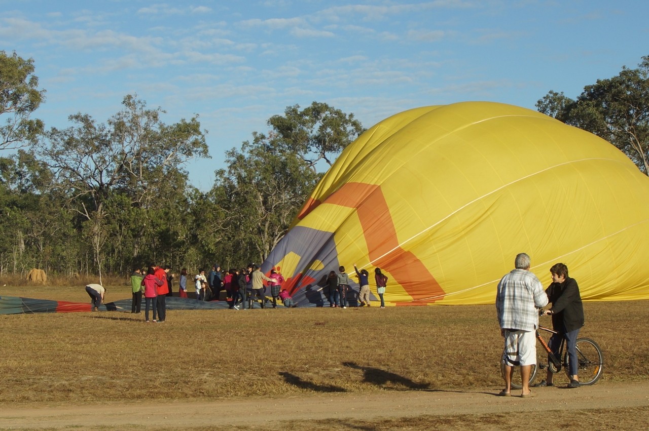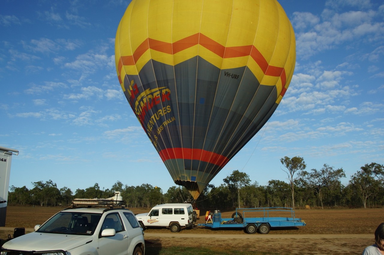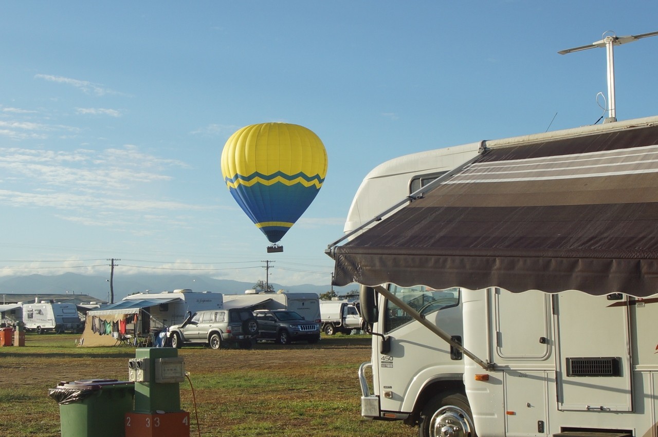 Back in Mareeba we had a balloon encounter. We were parked up in the Rodeo Grounds, along with hundreds of others including as it turned out several others we had met on the trip to the Tip. Strange noises over the truck in the morning and lo and behold 4 buckets of Asians descended upon us…