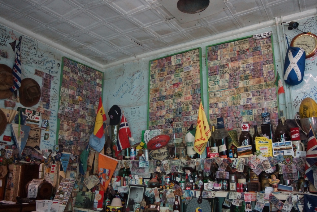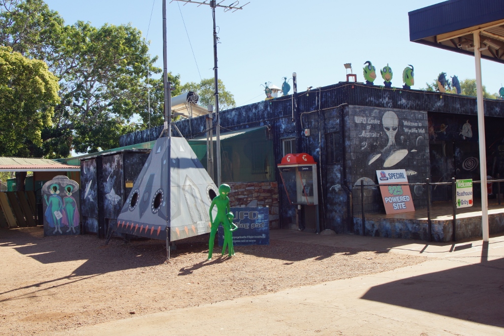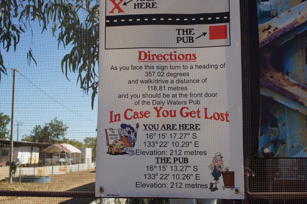 The less than locked in stone agenda called for a stopover at the Daly Waters Pub. We were advised that it was unwise to arrive there late in the day as you were likely to be turned away, so popular is the place. So we chose to stop about 100km short of there to facilitate an early arrival the next day. About 2.00pm we pulled into a roadside stop near Newcastle Waters only to find a multitude of similarly advised nomads. By about 3.00pm you couldn’t fit another vehicle although a couple of small cars and wiz bangs squeezed in between vans etc. Some 35 lots parked up in a roadside stop but it turned into a night of ‘high’ entertainment with drinkies and sing songs all round….
