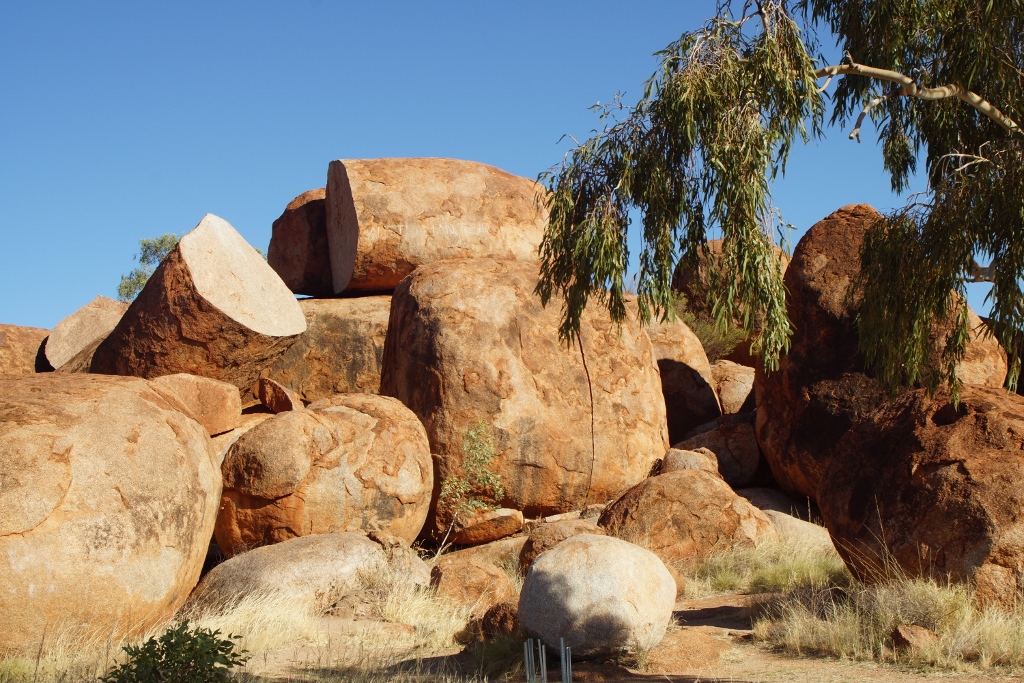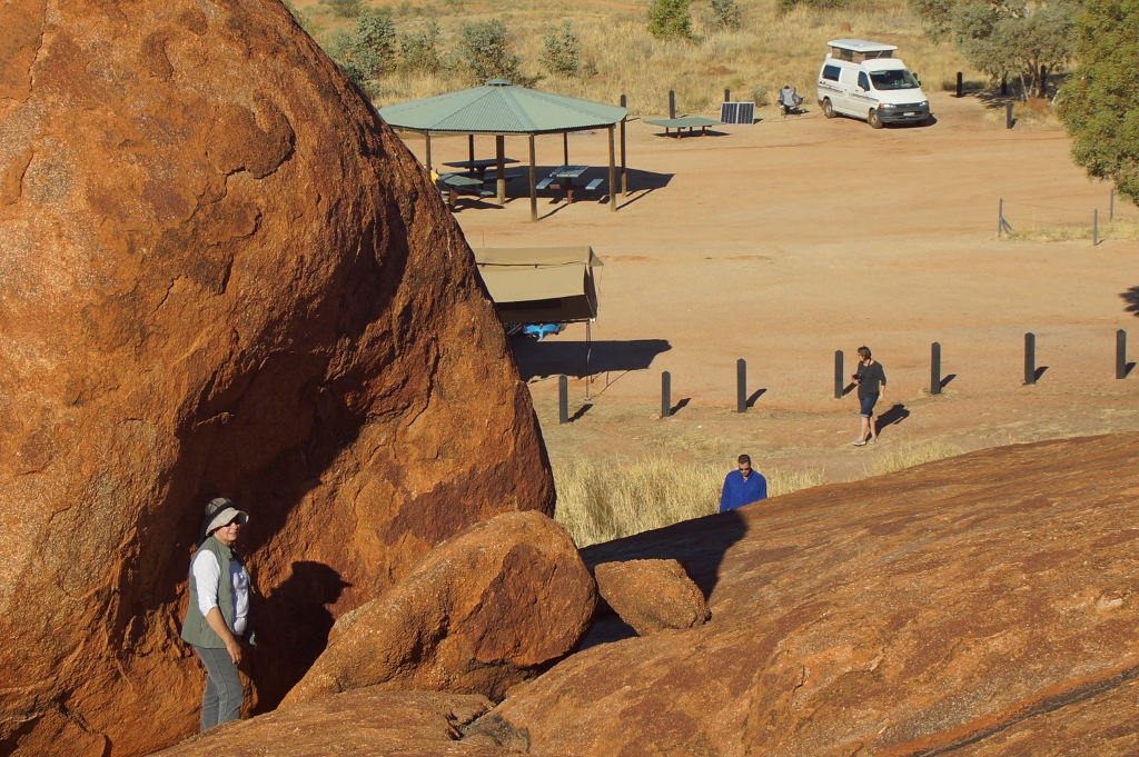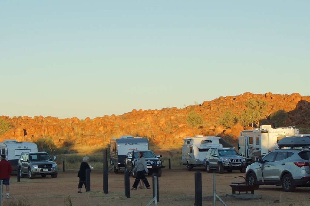 Well we made it finally to The Devils Marbles and found half of Australia was already there. Managed to find a couple of sites side by side after another couple moved over for us and set up shop before we went sight seeing….
