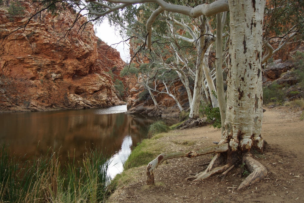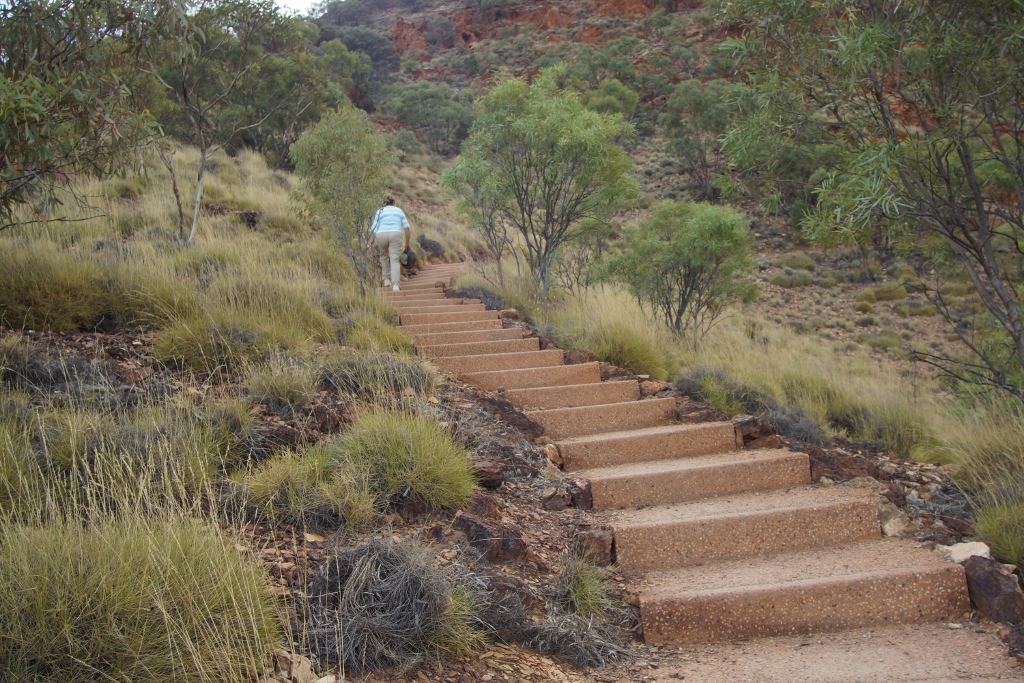 talk about a stairway to heaven. There is a lone ghost gum high on the gorge wall to which a walk is dedicated. Its testing but OK. The little gum tree exhibits much more determination than we did – its roots ply a course 70metres through rock to reach the water table below. This is a stunning location and as have so many sights in this part of the country it comes as a great surprise. The landscape is astonishing, dramatic, severe and beautiful.