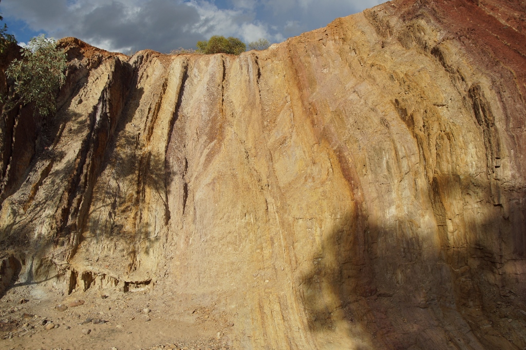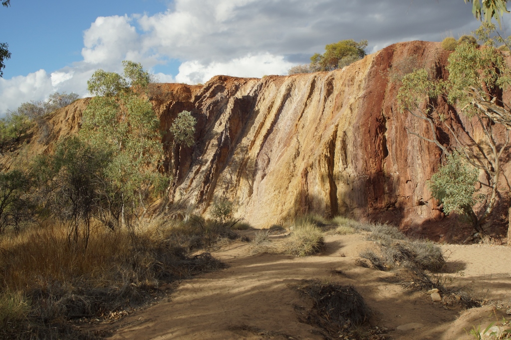the Ochre Pits. Not as colourful as those we saw near Lyndhurst in SA but part of the local scene. Interesting that taking samples from this supposed Aboriginal site carries a bigger penalty than they get for stealing or burning a white mans car…..
