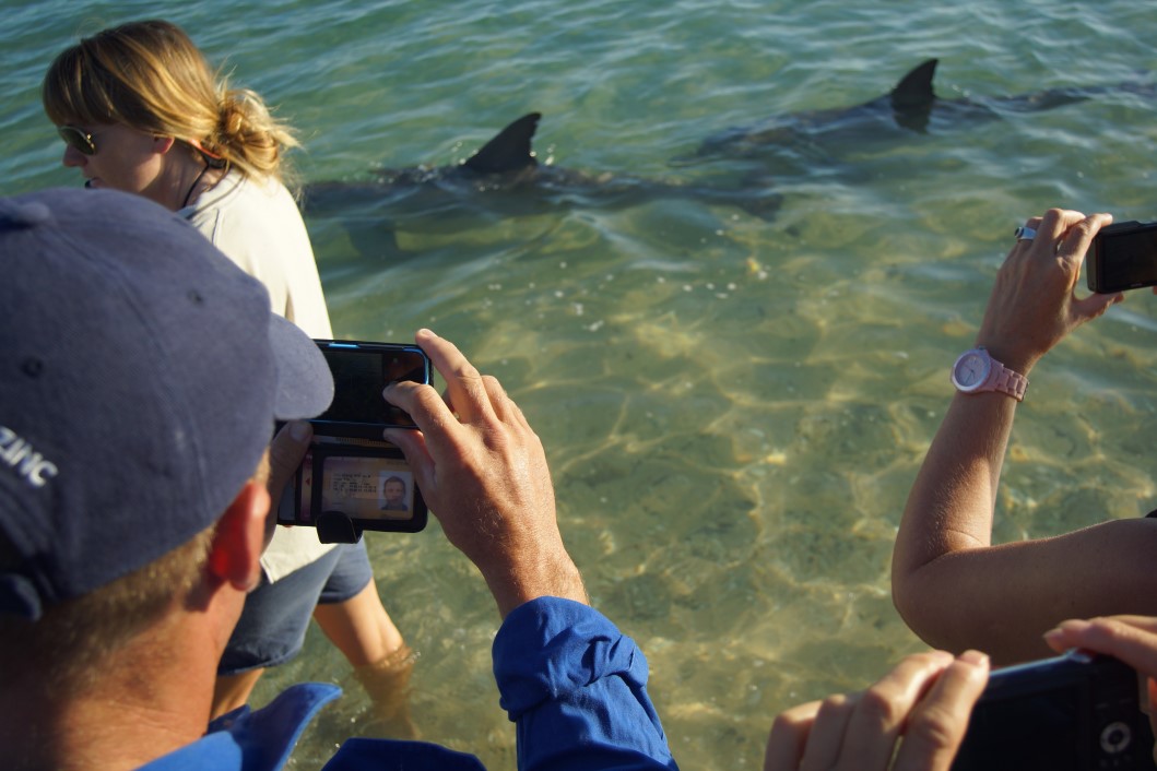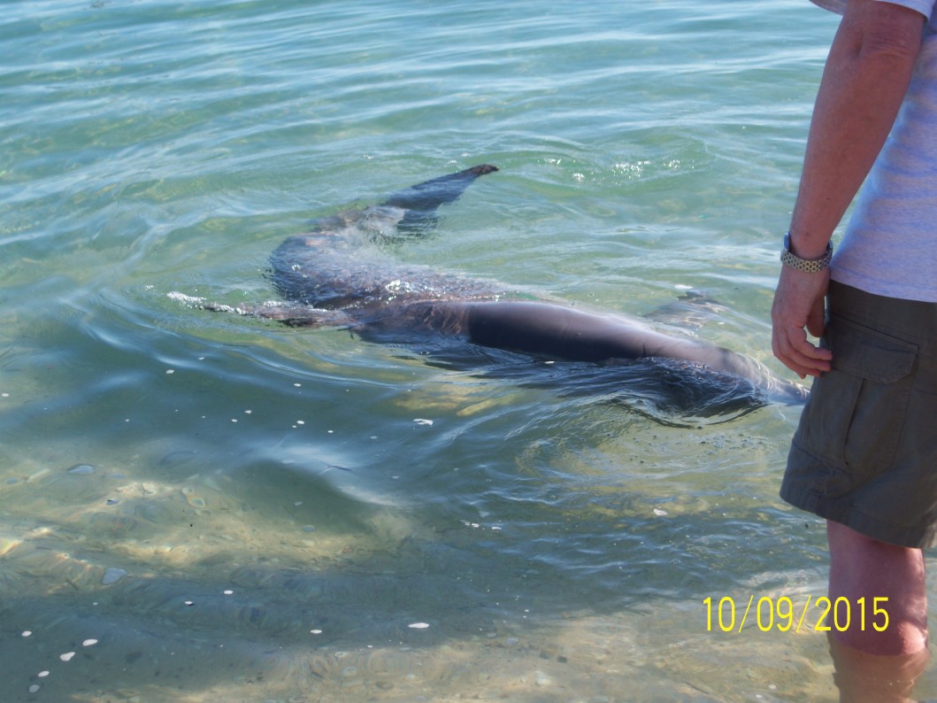 Some consultation with VIC and other locals led us to the conclusion that Suzi wouldn’t make it out to Steep Point – insufficient ground clearance. So, to achieve our objective our only option was to pay someone to take us. Attempted to book with service provider but nothing happening until a minimum number was reached. As it turned out 3 was the minimum (at $300.00 per head) and we had to wait 3 days for it to happen. In the meantime it was out to Monkey Mia to feed dolphins. Had to be there by 7.45 am. Horrendous hour but we got there along with 100 others. Good show though….