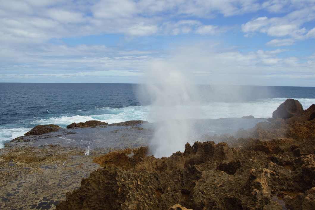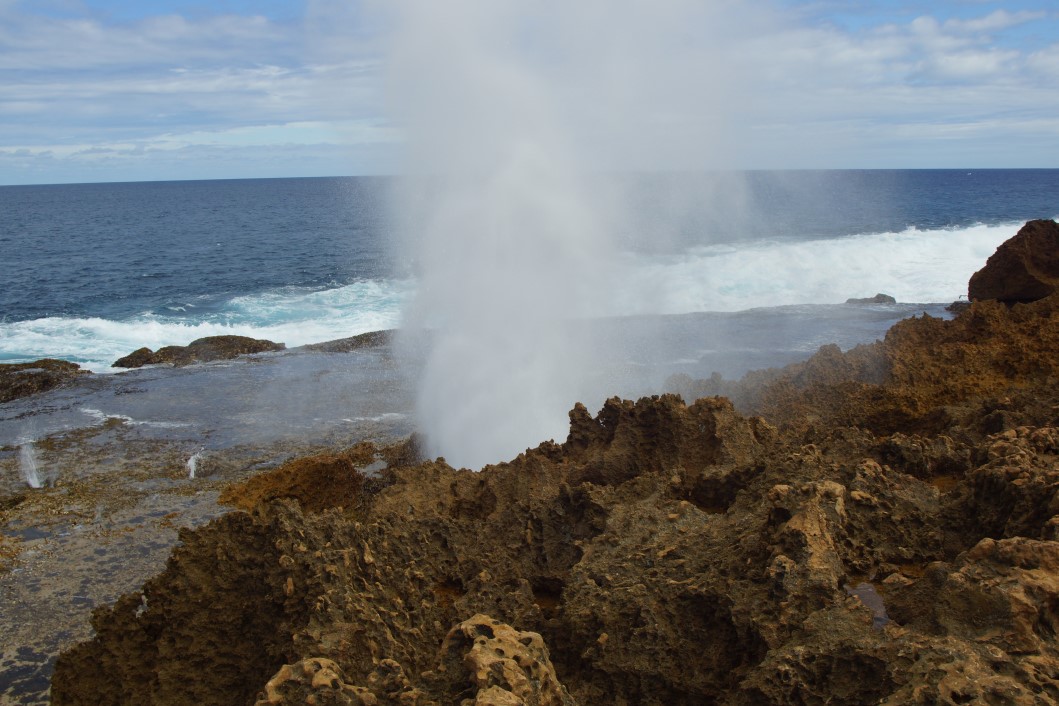 Young fella fishing off the rocks beside the blowholes….