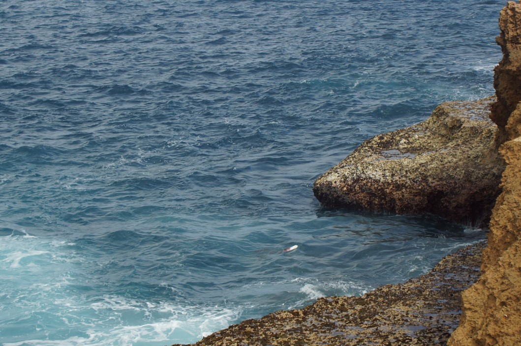 hooked a fish straight away. Got incredibly excited about the size of the fish – “biggest I’ve ever caught – look, look, look”. Played it for maybe 10 minutes, yelling excitedly all the way. Just got it to side of rocks about to clear the water as shark takes it to the gills. Rod is nearly broken with weight of fish but even with only head left he tries to clear the water again and shark takes the rest, hook, line and sinker….