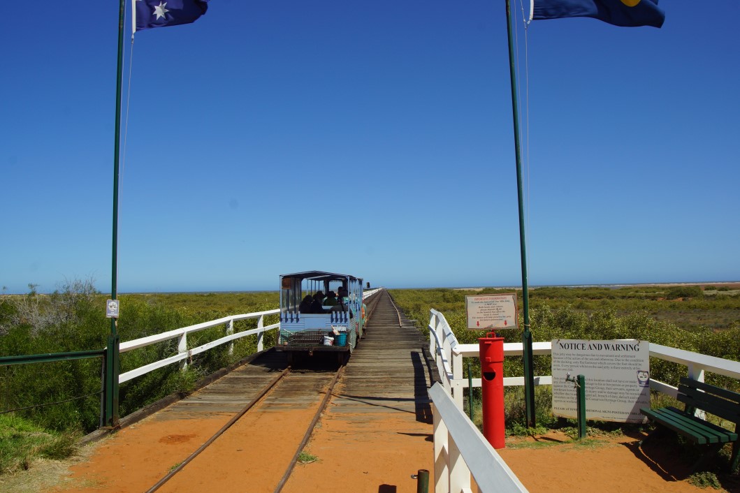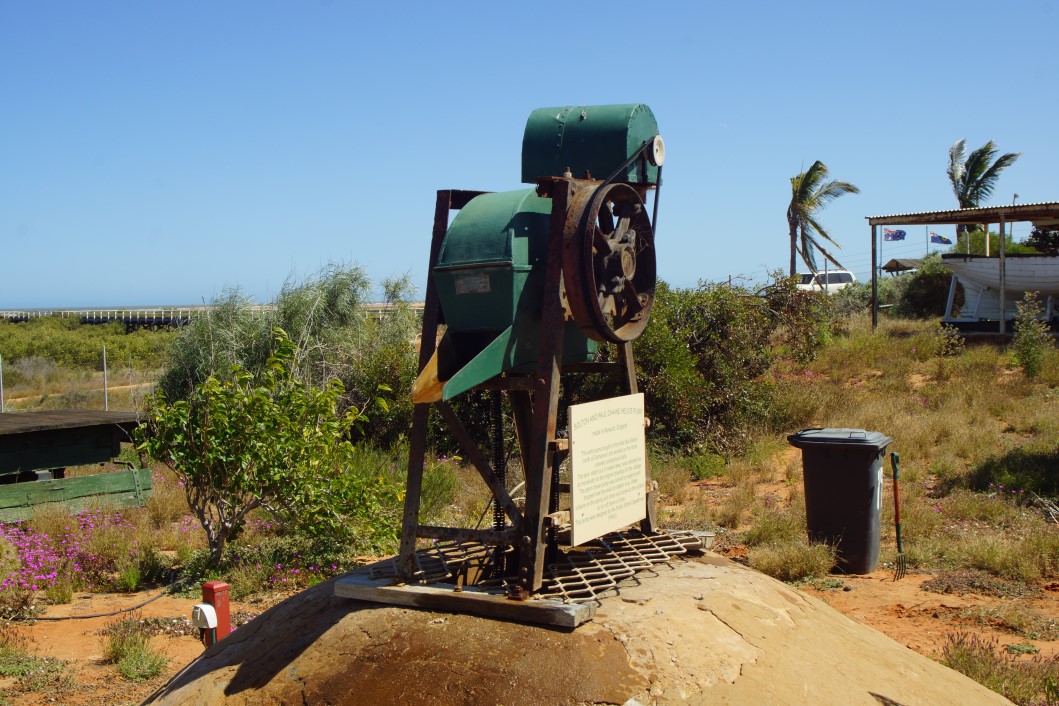 then off we go to see whats what in downtown Carnarvon. Well, not much really. A nice little lighthouse keepers cottage, a bit of local shearing history, an old steam train that hauled stuff down the jetty and elsewhere an avenue of honour for the 645 casualties of HMAS Sydney II.