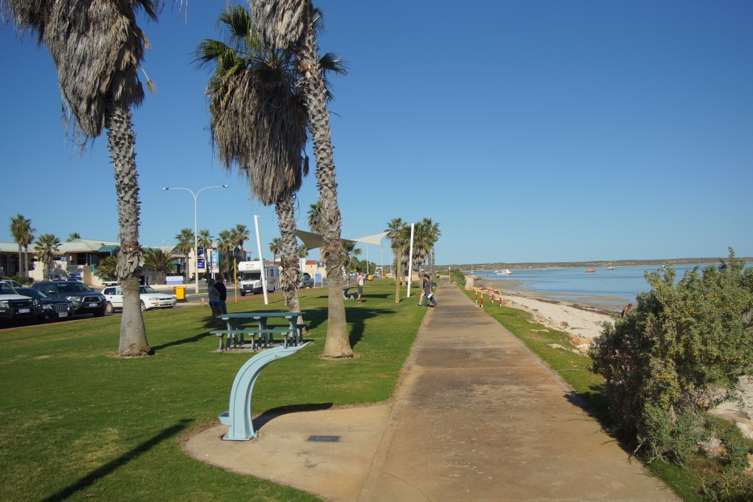 We overnighted at a ‘free camp’ just south of Denham only to be harassed by a council ranger at 7 am the next morning. We did notice a sign on entry that specified the need for a permit but phone call to council at 5.05 pm on our way in resulted in a ‘no response’. Ranger was apologetic but insisted we still owed money for permit and ‘he had our number’ – 15 bloody dollars to park up on dirt with absolutely no facilities except a nice view. The caravan parks in Denham have the council in their pockets. We then paid $44.00 per night to stay in the ‘overflow’ area of one of the parks. Ah well!