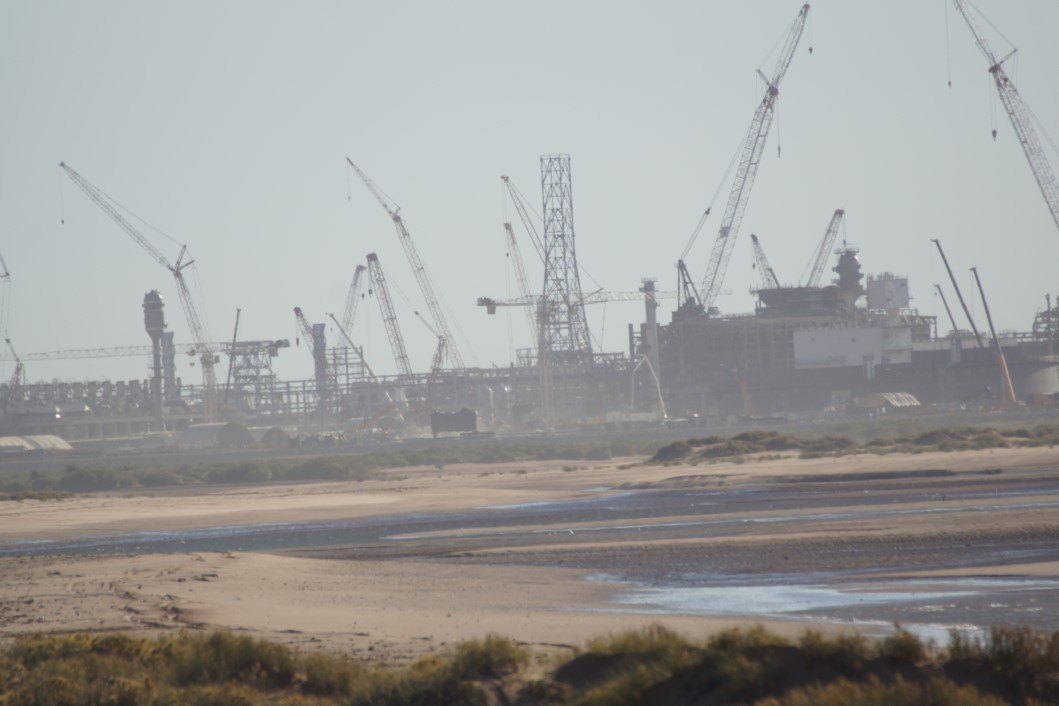 The above show the project through a long lens and the new housing estate being developed in town and the caravan park. There are some 400 workers housed and fed daily in the caravan park alone. Greyhound buses ferry them backwards and forwards to the construction site or to the airport as they fly in and out. The whole project is massive and will ultimately transform Onslow into something like Newman or Tom Price – a substantial ‘mining town’. Mind you, it has little else. It could only otherwise be described as a sleepy little fishing village with only a salt production plant to otherwise provide income….
