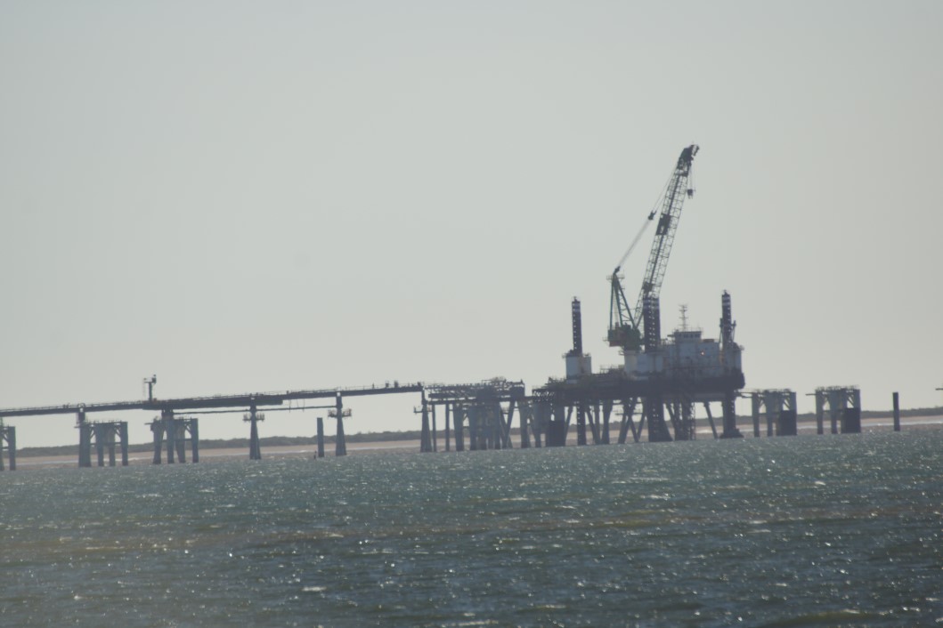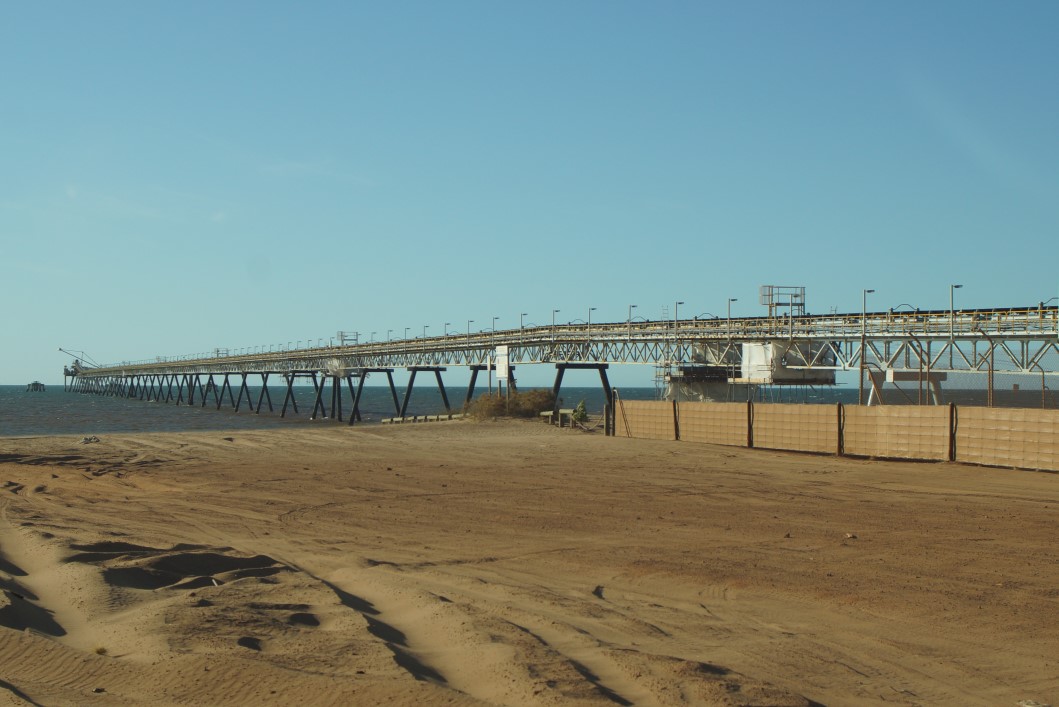 A massive pier and conveyor belt carries salt out to ships, but we saw none on our visit. Do wonder how much actually happens here.