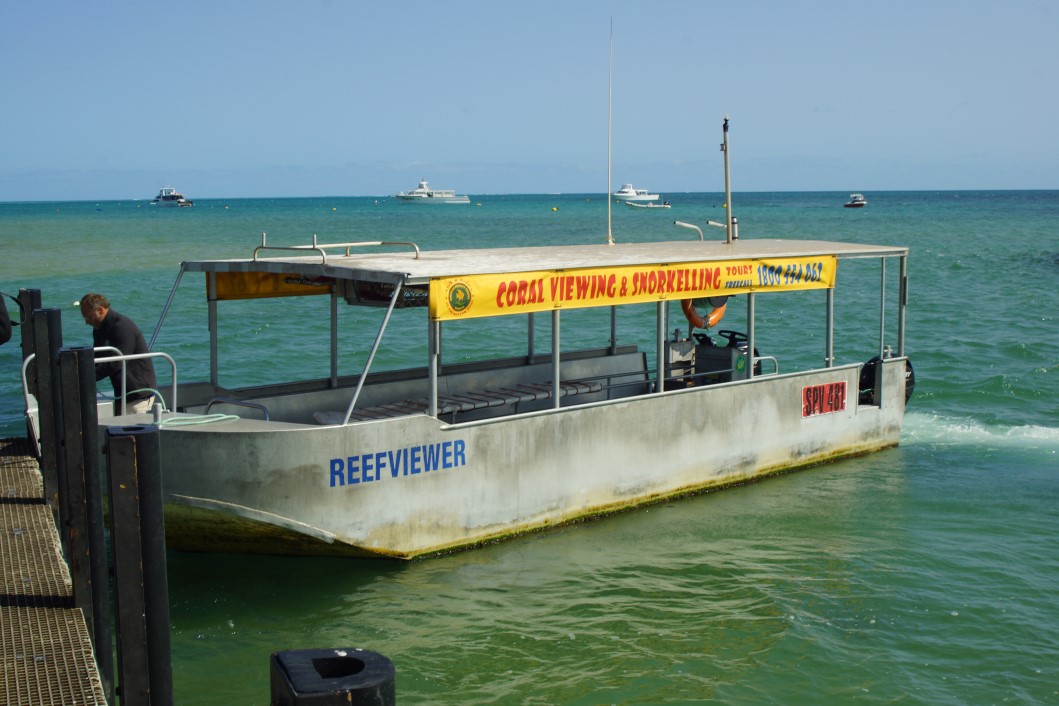 Have to find out. Booked a glass bottomed boat guided tour of the reef for the next day. Very entertaining guide was Alec but hardly a visual treat the reef….