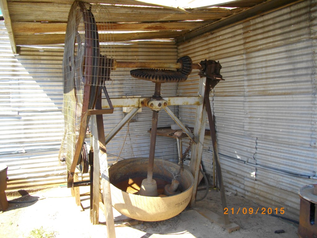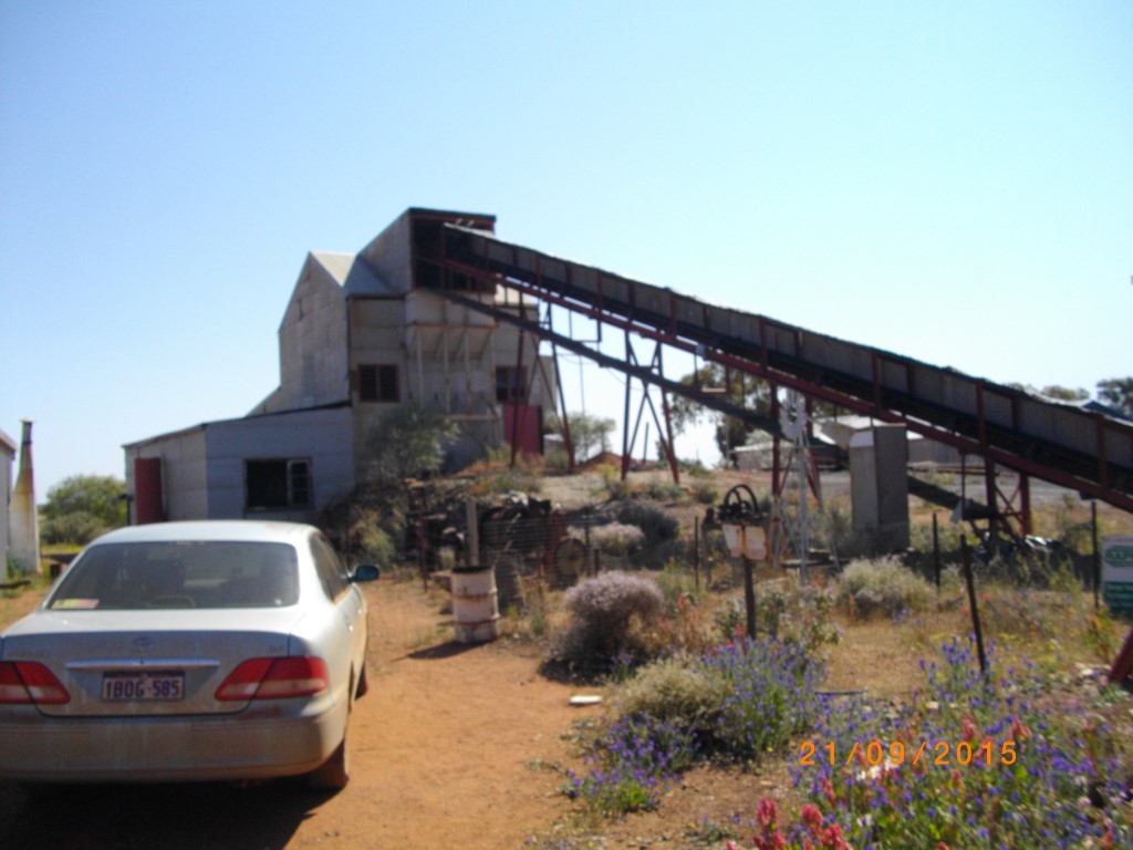 Well gold continues to draw us on. Back down the Great Northern Highway, back through Mt Magnet where still nothing much appeared on the streets on down to ….. PAYNES FIND. Well once upon a time a Mr Payne lodged a gold claim although he did cheat by beating his partner to it. Other claims followed and the government put in a gold stamper to process the ore. Some 70 or so years ago the Howard family bought out the Payne claim and continued fairly successfully until relatively recently. Also at some point the Howards bought the gold stamper and operated it until just 4 years ago. The current family member Elaine Howard took over operations from her father some time ago and she continued to operate the stamper till just recently. She also runs guided tours and does a bit of prospecting on the side – well travelled and now 72 years old….