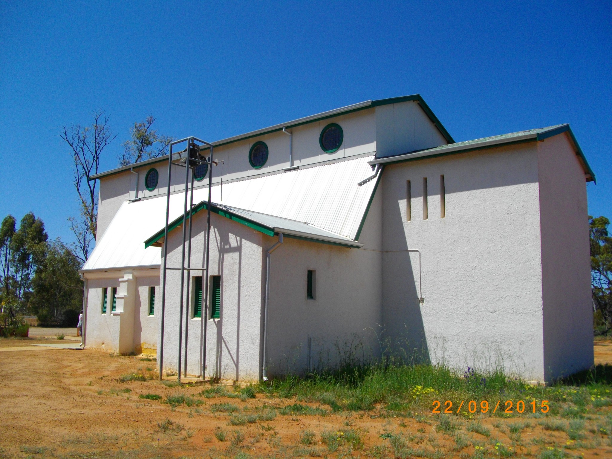 Following the tourist maps to partake of nature we found ourselves again heading north inland to Perenjori. The wildflowers seem to be a little thin on the ground at this point but the tourist info centre assures us there is much yet to come. Certainly there’s another Monsignor Hawes church …