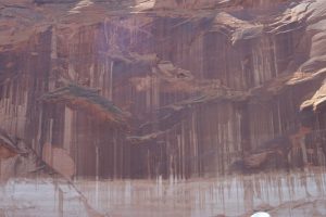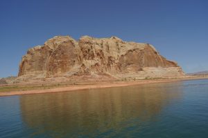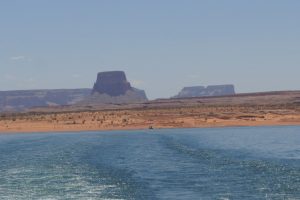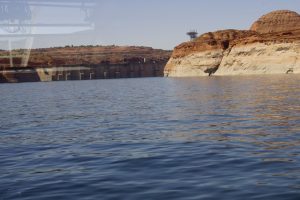 The Colorado river is dammed here and still again further down at the other end of the Canyon. The resulting waterway (Lake Powell) is 198 miles long but only about 2 – 3 miles wide but quite a bit narrower at some points. The setting is quite stunning….