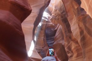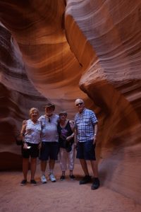 Whilst on the boat a couple of ladies showed us photos of canyon “slots”. Looked stunning so decided we best check it out for ourselves so booked an afternoon tour with the Navajos. $312.00 for four people took a bit of swallowing but after what Gary and Linda have spent on our entertainment it was the least we could cough up for. So at the appointed hour we climbed aboard our truck…(which I don’t have a photo of) and we head up country.