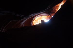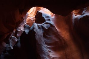 Caused by water and wind over squillions of years it is really just a fissure in the sandstone but it is spectacularly beautiful.