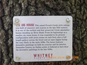 I think this is Saturday and we’re off to the Whitney Plantation. I know it was a bloody early start as we had to meet the tour bus at another hotel further up the road at 8.00am. We were actually early and the concierge at the Hotel Modern, Geoff, took pity on us and invited us in for breakfast. He also booked us a bus tour for Monday. Very accommodating and friendly. Anyway the bus finally arrived at 8.30am and we headed off to the plantation.