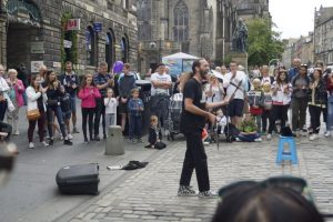 Edinburgh is fascinating, old, and captivating. There are 3 seperate bus tours and we took them all, some more than once. There is so much to see its hard to know where to start but we did start with the Royal Mile – this is as the name suggests is a strip of roadway in the middle of the old city starting at Edinburgh Castle and travelling down to Holyroodhouse and the new Scottish Parliament. As we didn’t in all our time here manage to get to the latter two places please feel free to Google them as I believe they are worth a look and they are on our list to visit first up next time. By the time we took one of the bus tours around the perimeter of the city and walked the Mile got some cash from a phone booth, inspected one of the most beautiful cathedrals we have seen so far, watched/observed the street performers (the one juggling the knives was from Sydney and bloody entertaining too) the day was done…