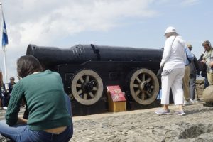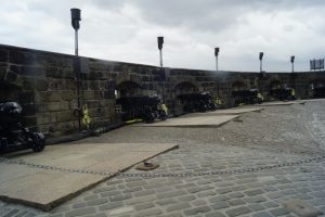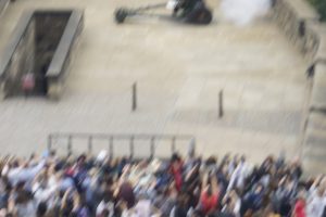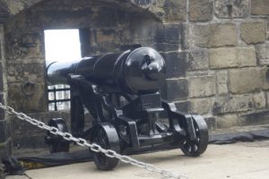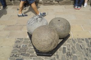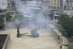 The guide book suggests spending a couple of hours visiting the Castle, moving on to various other things for an hour or two here and there, but we didn’t see everything in the Castle in 6 hours. Crowds were definitely a problem but there is so much to see you’ve just got to bear with the masses. Unfortunately there are certain photo restricted areas not the least of which is the Scottish regalia display. Whilst not as impressive as the Queens display in the Tower of London it is still worth a look. We managed to be there for the firing of the one o’clock gun. This concurs with the dropping of the time ball, the same procedure as is adopted at the Greenwich Observatory in London but it scared the s… outa me and the photo shot went astray…