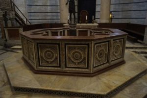 although the baptistery is somewhat more austere than its counterpart in Florence…