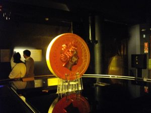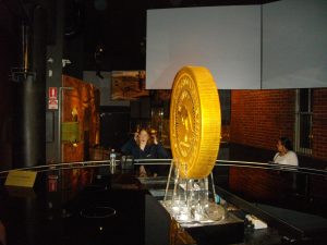 forming a gold bar weighing a few kilograms (I can’t remember how many) which then gets melted down again for the next show. Interesting to note that some 51kgs of gold comes into the Perth Mint from Kalgoorlie every day and is refined here (but not where we were watching).
